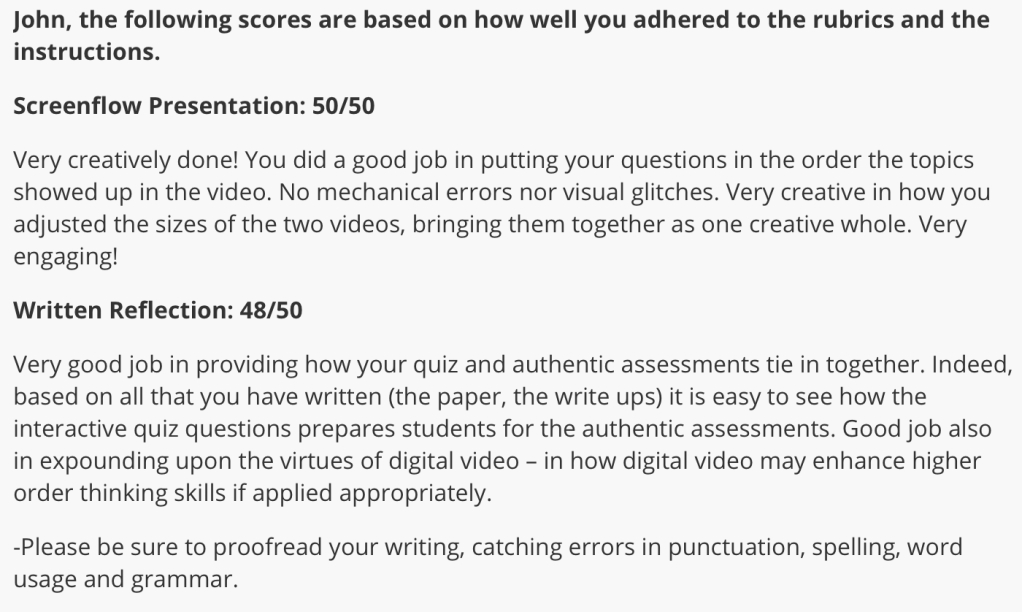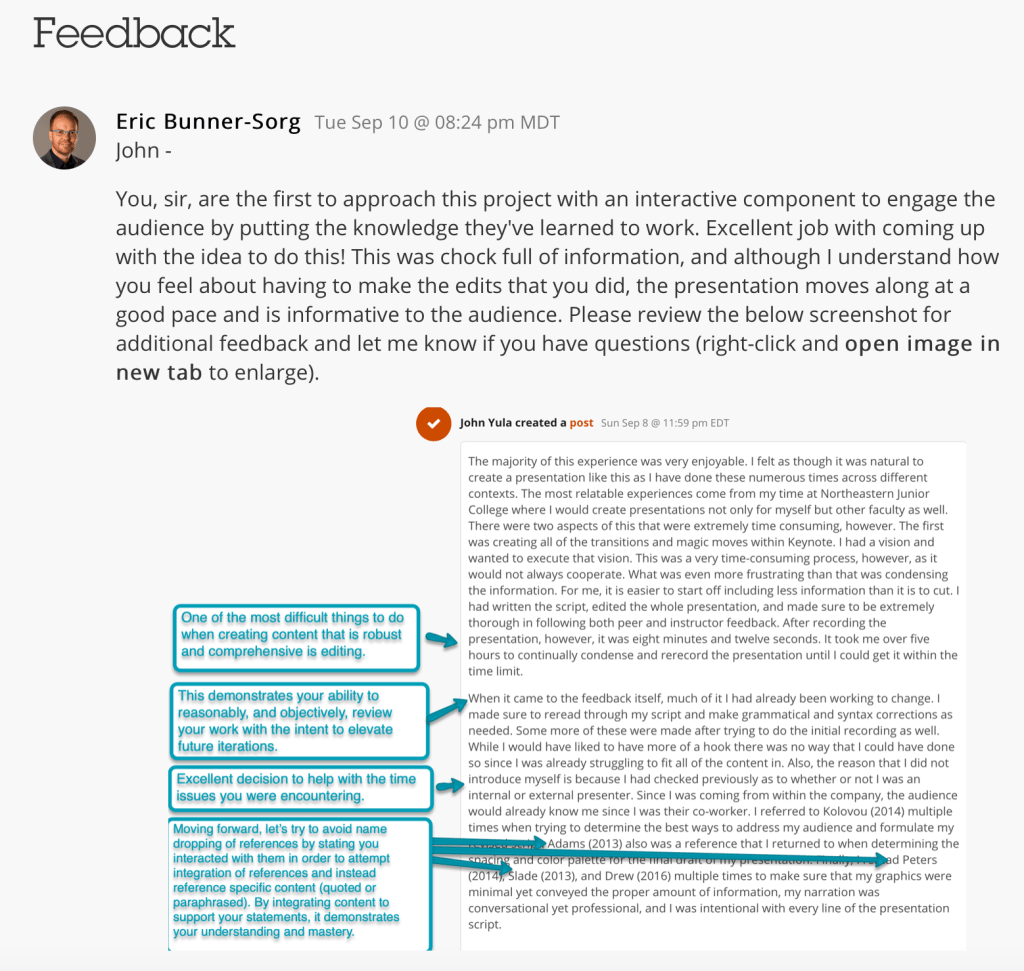 Looking back at the feedback for IDT522: Corporate Training and Motivational Development