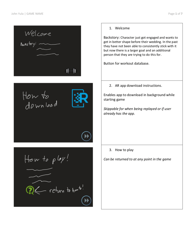 For future iterations of Form to Fit I would like to develop more instructional workout videos further increasing the overall size of the video library. I would also like to create the augmented reality portion that was initially conceptualized. The trigger images for the augmented reality, as well as QR links to the videos, would be placed at local gyms, parks, and fitness centers. Having the videos play directly within the game would also be a major upgrade as that is not currently possible in Adobe XD.