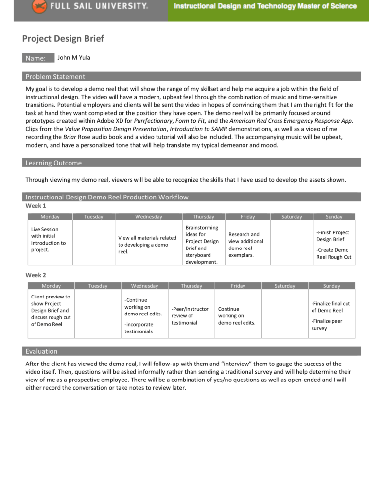 This course was a way to express myself both as an individual and an instructional designer through the creation of a demo reel and portfolio website.